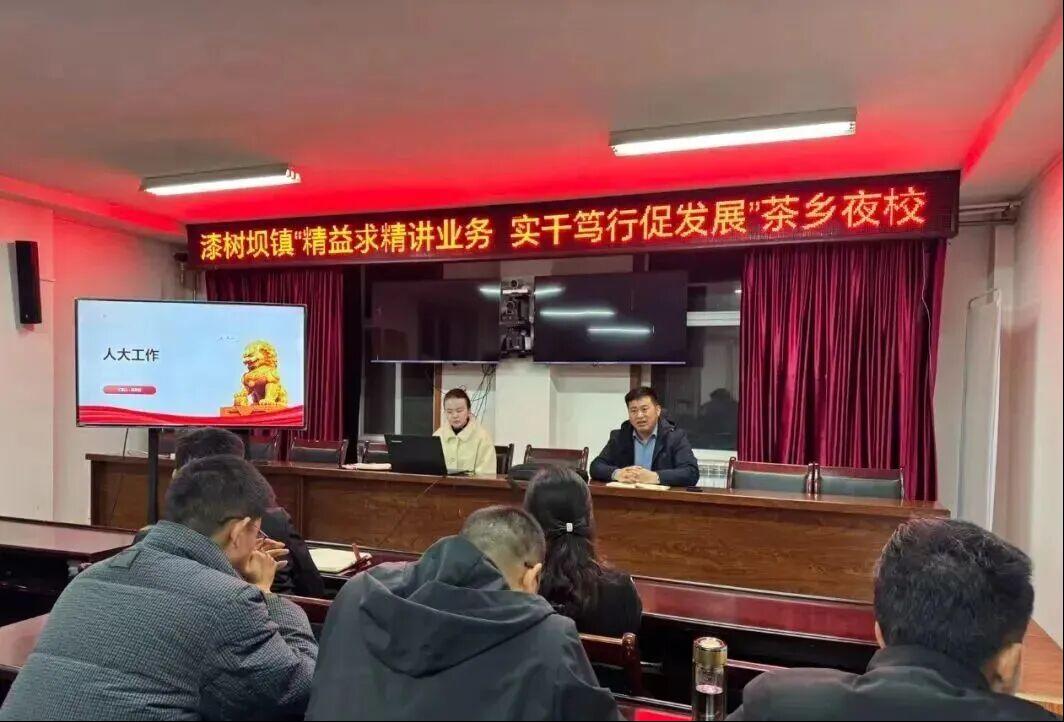 如今,漆树坝镇“茶乡夜校”已悄然走过10余期,百余人次的机关干部在这里“充电蓄能”。夜幕下的课堂,早已不是简单的“补课之地”:它是干部们破解工作难题的“智囊库”,让人大工作的逻辑的清晰可见;是连接部门与群众的“连心桥”,让每一位干部都成为民声的“倾听者”、实事的“推动者”;更是茶乡振兴路上的“加油站”,让基层治理的力量在学习中不断凝聚。