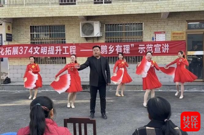 紧接着,陕南民歌《送饭调》的悠扬旋律响起,志愿者们用软糯的方言,唱出了田间地头夫妻互敬互爱的温情场景:“太阳出来暖洋洋,送饭送到田埂上,一碗米粥香又甜,夫妻同心日子旺”,熟悉的乡音、亲切的场景,让台下的乡亲们仿佛看到了自家的生活片段,脸上满是笑意。当《家和万事兴》的经典旋律响起时,现场更是掀起了小高潮,老人们跟着哼唱,孩子们跟着拍手,歌声里满是对和睦家庭的向往,文明的种子,就在这婉转的旋律里悄悄发芽。