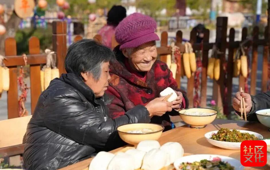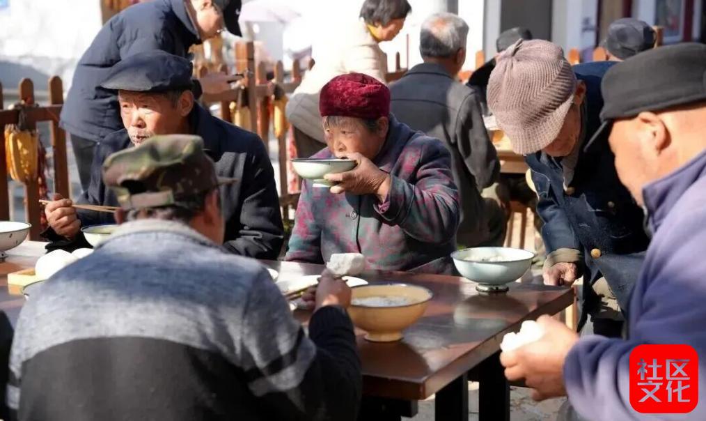 “开饭咯!今天太阳足,咱们院儿里摆桌,热热闹闹吃一顿!”中午11点半,村支书张秋菊端着满满一盆蒸馍走来,白胖的馍馍冒着热气,指尖捏上去软软的,带着柴火的焦香。老人们拄着拐杖、互相搀扶着围拢过来,碗筷碰撞的脆响里,每个人的脸上都漾着满足的笑意。“你尝尝这菜豆腐,细嫩得很,配着腌菜吃,香得很!”周荣华大爷夹起一筷子菜豆腐,往嘴里送的同时,不忘给身边的老伙计推荐。他和老伴每天都来这儿吃饭,“昨天焖肉,今天菜豆腐,顿顿不重样,3块钱就能吃顿热乎饭,儿女在外打工,再也不用操心我们吃饭的事儿了。”话语里满是踏实与欣慰。