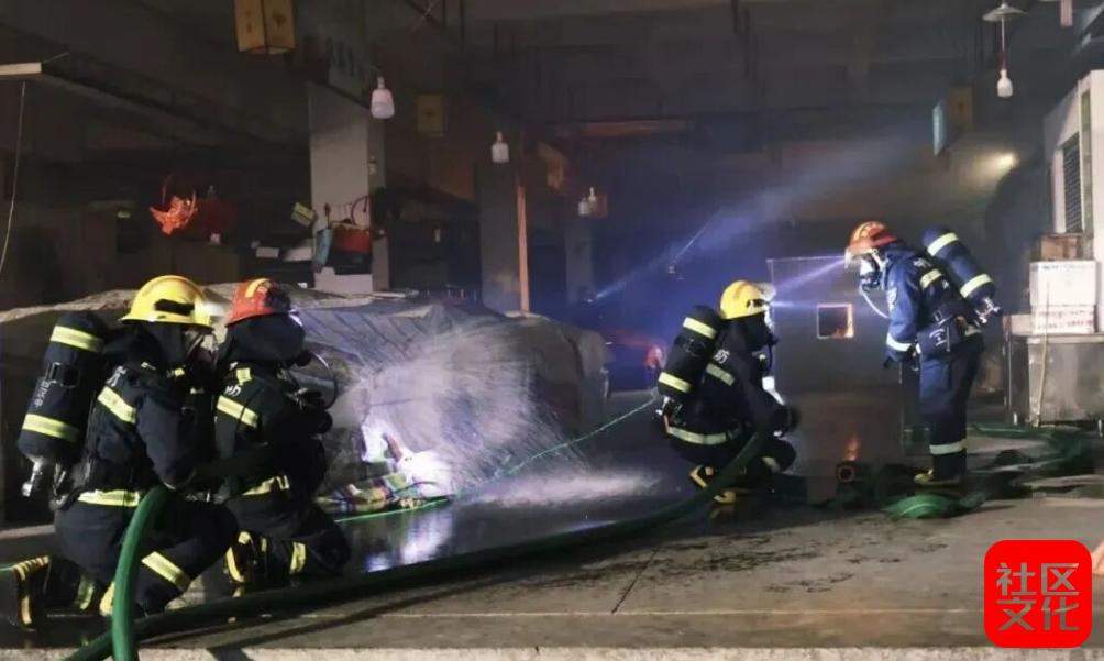警报响起的刹那,早已整装待发的消防救援队伍如离弦之箭,迅速集结到位。指挥员一声令下,救援力量即刻分成警戒、侦查、搜救、灭火、供水五个作战单元,各司其职、协同作战,一套标准化应急处置流程有条不紊地展开。警戒单元迅速封锁市场出入口,疏导周边无关人员,为救援开辟安全通道;侦查小组佩戴防毒面具,顶着刺鼻的浓烟,手持探测设备深入火场,精准摸清火情蔓延范围、被困人员位置及易燃易爆物品分布,实时向指挥部传回情报;无人机升空盘旋,凭借高空视角监测火势动态,同时启动机载喷水装置,对外围火势进行压制,为地面救援争取时间。