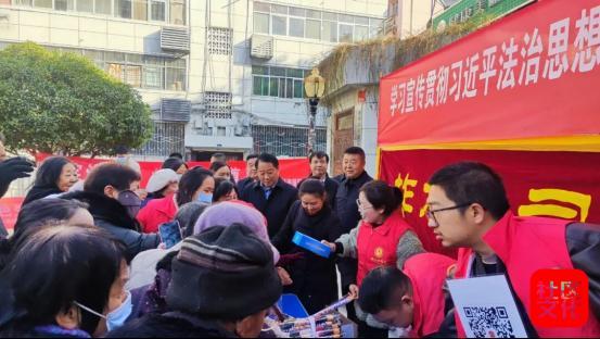 各成员单位通过悬挂横幅、摆放展板、现场咨询、案例解读、发放法律知识读本等形式,宣传宪法和与本部门职责密切相关的法律法规。活动中,累计向群众发放普法资料3500余册,发放购物袋、年历、纸杯等宣传品3000余份。引导广大群众主动尊法学法守法用法,形成“一站式”法律服务矩阵,掀起了全县学习宣传宪法的高潮。