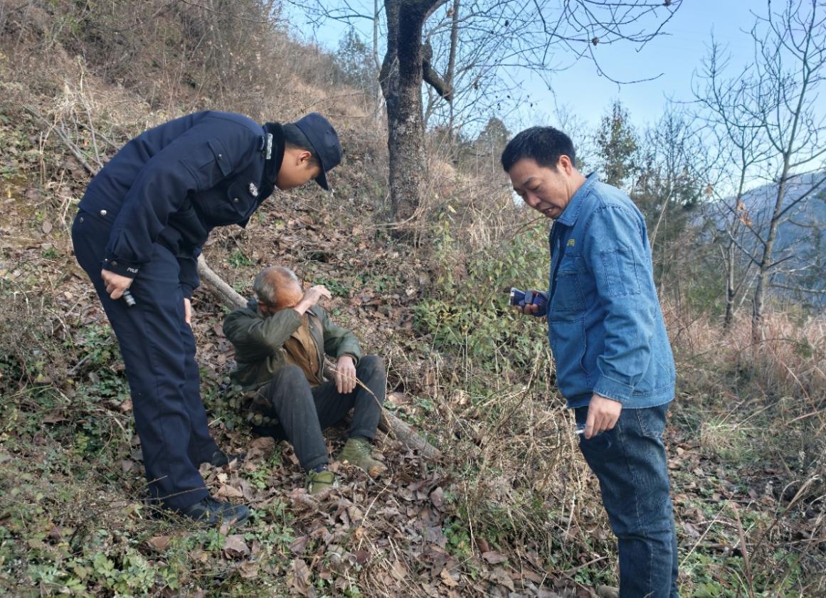 为尽快找到老人,民警第一时间联系村组干部,发动周边群众一起上山展开搜寻。大家兵分多路,沿着老人可能走过的路线仔细寻找,不放过任何一个角落。山林间,民警和群众们呼喊着老人的名字,脚步匆匆,眼神中满是焦急与关切。经过两个多小时不间断的紧张搜寻,终于在霍台子半山腰密林中发现了老人的身影。原来,老人上山捡柴时不慎摔倒不起,好在身体并无大碍。民警赶忙上前查看老人的状况,确认老人安全后,一颗悬着的心才落了地。
