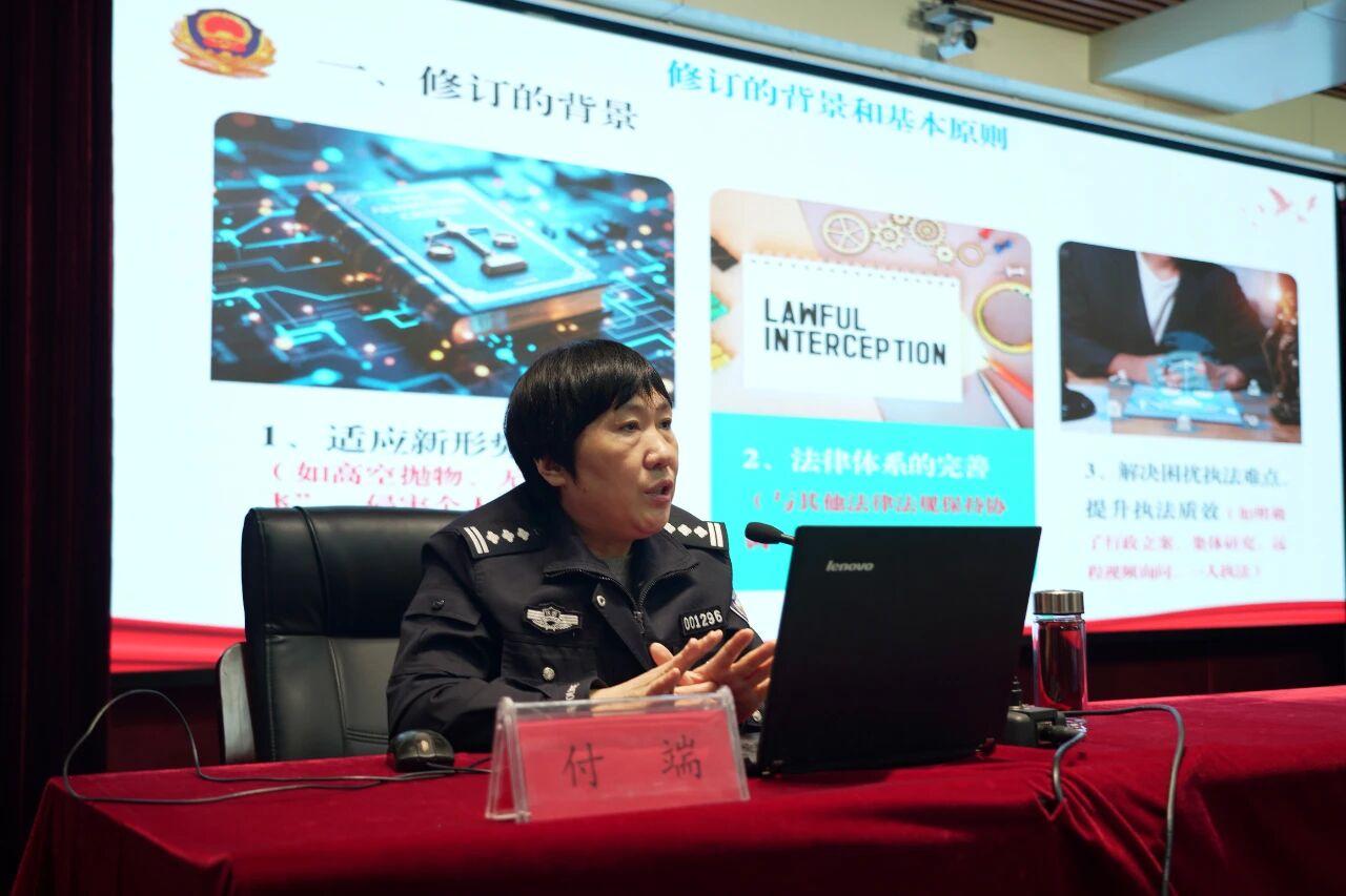 培训会上,付教授从法条核心内涵解读、新旧法条重点内容比对、实体与程序常见问题解答等维度展开讲解。通过逐条对比法条、列举典型案例的方式,清晰呈现法条的具体变化与修改要点,细致梳理了执法办案中易混淆的条款及常见程序疏漏问题;同时,紧密结合基层公安工作实际,针对法律适用中实体认定、程序操作的常见与难点问题,开展了重点剖析和实务指导,为参训民辅警精准适用新法、规范执法行为提供了清晰指引。