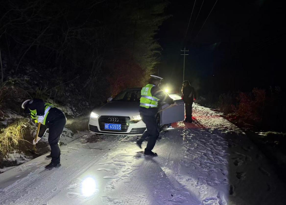 “警察同志,我们的车陷在雪地里动不了了,四周全是积雪,麻烦你们快来救救我们!”12月15日晚,曹坪镇派出所的值班电话骤然响起,电话那头,一个外地司机带着哭腔,声音里满是焦急与无助,诉说着他们此刻的艰难处境——其驾驶的私家车在路过曹坪镇九六路青刚槽路段时,不慎深陷积雪,人车皆被困,情况万分危急。