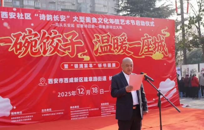 冬至的暖阳,洒在古都长安的街巷,也洒进了西咸新区建章路街道长庆和兴园社区的每一个角落。2025年12月18日,当清晨的第一缕晨光穿透薄雾,一场融合了孝道传承、诗词雅韵、书画墨香与人间烟火的文化盛宴,正在这里徐徐铺展——第十届“一碗饺子温暖一座城”大型公益活动暨“银滩宴羊”杯书画展、“诗韵长安”美食文化年货艺术节,在万众期待中盛大启幕。