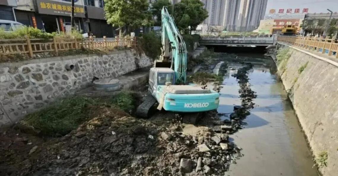 治水先治污,源头是关键。专班人员沿着河岸摸排每一处排污口,将15处污水排口全部封堵截留,把生活废水“引”入市政管网,斩断污染河道的“黑手”;针对桃花源度假村雨污合流渠的顽疾,开展清淤、硬化、分流改造,让雨水和污水“各行其道”,从根源上杜绝污水入河。清淤疏浚同步推进,挖掘机、清淤船轮番作业,2770米长的河道迎来“深度清洁”,2万方河底淤泥被彻底清除,河道行洪能力大幅提升;对排涝薄弱区段进行加宽、砌护,新建的雨水箱涵、管网如“毛细血管”般织密排水网络,让汛期积水“有处可去”。