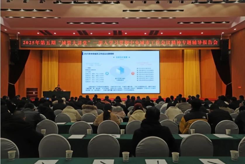 报告会以《深入贯彻落实中央城市工作会议精神加快推动城市治理体系和治理能力现代化》为题,从“2025年中央城市工作会议主要精神、新阶段城市治理面临的新难题新挑战、做好新时代城市工作的几点重要启示、推进中央城市工作会议精神落地实施”四个部分,对会议召开的背景、总体要求、形势变化、重点任务、组织保障、抓好落实等内容进行条理清晰、生动详实的解读,客观务实分析了近年来城市管理工作面临的困难和问题,总结提炼出抓好新时代城市工作“五个必须坚持”的重要启示,针对性提出六方面具体落实措施:坚持系统治理,健全市县区“一委一办一平台”工作体系;强化精细治理,持续实施城市更新,营造宜居城市环境;推进智慧治理,促进城市运行更科学、便捷、高效;注重源头治理,推动城市管理融入基层治理,夯实工作基础;加强风险治理,深化安全韧性提升行动,保障城市安全运行;做到依法治理,不断提高新时代城市治理法治化水平。