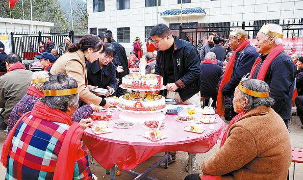 10月22日,石坡镇石羊村举行孝德主题实践活动。图为老人过集体生日。