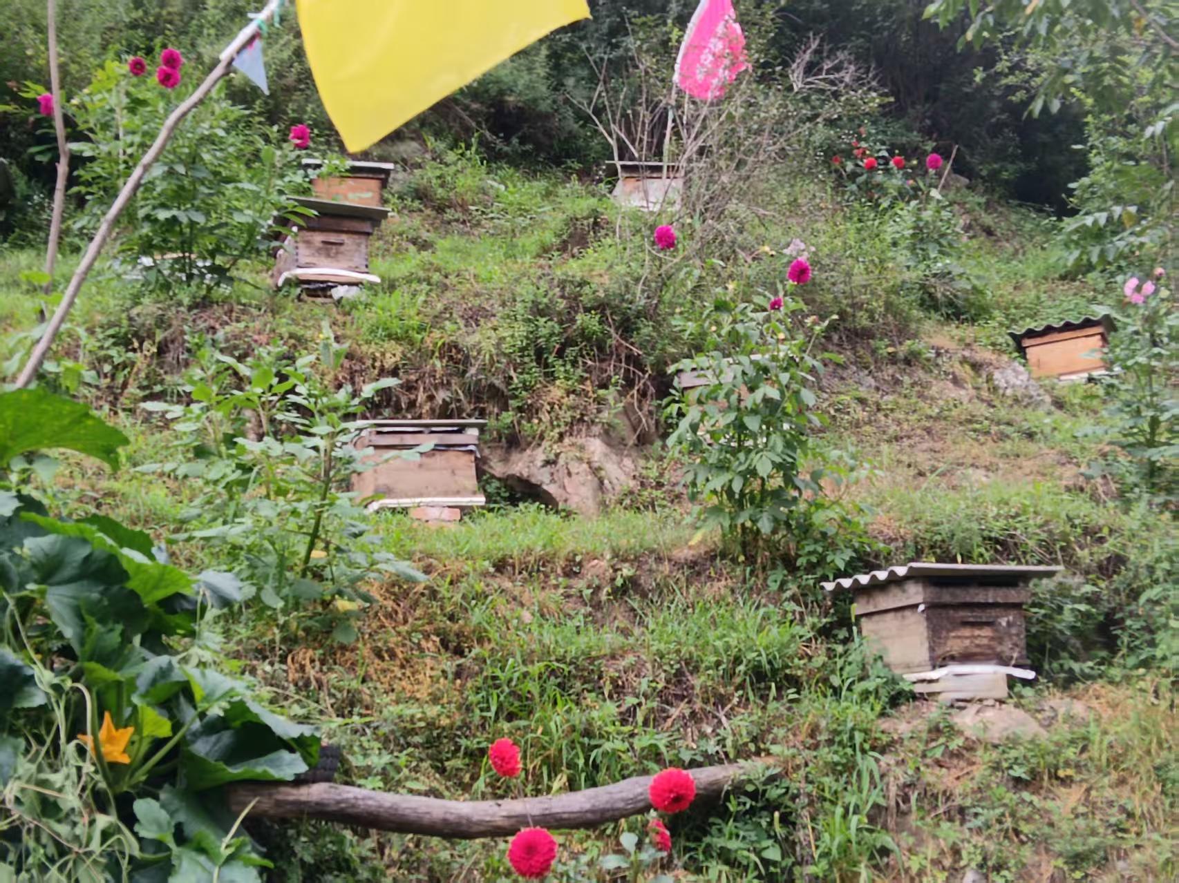 蓝田县地处秦岭北麓核心区域,境内森林覆盖率高,海拔跨度500-3000米,拥有全球同纬度最完整的暖温带森林生态系统。这里远离工业污染、空气含氧率高、水源纯净、土壤富硒含锌,方圆50公里无规模化农业种植,从源头杜绝了农药残留与环境侵害。鲍文森的蜂场选址于蓝田县辋川镇深山之中,周边2.5公里半径内,春有刺梅、连翘、山桃花;夏有狼牙刺、党参、黄芪;秋有五倍子、野菊、五味子;冬有瑞香、女贞等70多科180种蜜花粉原植物,更囊括600余种药用花草,形成了“三季有花、四季有蜜”的天然蜜库的生产基地。