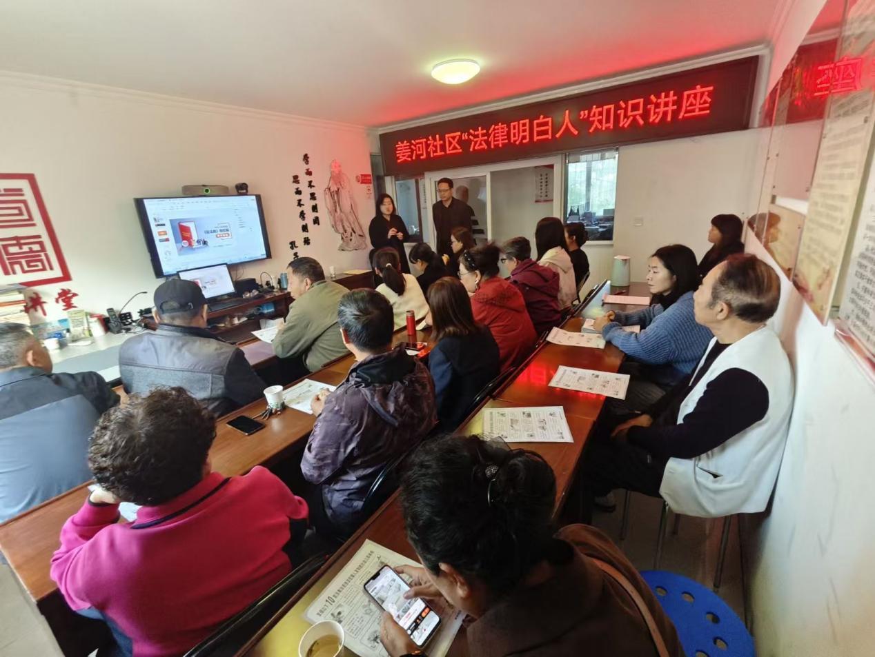一是充分发挥“巡回走访”作用。将巡回走访点作为普法宣传点,以达到社区普及、群众受益的社会效果。二是强化普法与各小区间的联动。在走访过程中发现问题,及时发出“问题整改单”提醒建议等,有效预防类似纠纷发生。三是线上线下便民利民。利用微信平台在辖区组建“矛盾纠纷调解群”,线下向辖区群众发放便民联系卡,打通普法便民服务的“最后一公里”。四是设立矛盾纠纷工作室。从源头上预防纠纷的发生,坚决防止小纠纷酿成大矛盾,推动辖区持续健康发展。五是注重运用新媒体的正向引领功能。通过微信、公众号等平台,全面强化法治宣传,六是推动社区各项工作高质量发展。近三年来,姜河社区联合康嘉律师事务所驻社区赵律师每季度开展“法律明白人”法治培训讲座。通过培训,引导社区“法律明白人”及工作人员养成办事依法、遇事找法、解决问题靠法的思维习惯,进一步提高了“法律明白人”的法律应用水平,为推进共建、共治、共享的基层社会治理体系贡献法律力量。