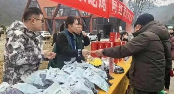 另一边的农特产品展销区,更是一派热火朝天的景象。原生态的土鸡、醇香的黄酒、手工制作的腊肉、鲜嫩的香菇,琳琅满目地摆放在摊位上。体验区里,烤乌鸡外焦里嫩,咬上一口,肉香四溢;乌鸡汤鲜香醇厚,喝上一碗,暖意直达心底。游客们纷纷驻足试吃、争相购买,“这土鸡是正宗的山里货,味道就是不一样!”“把黑河的年味带回家,让家人也尝尝鲜!”据统计,此次展销活动销售额突破50万元,一张张订单,成为助力农户增收的“金钥匙”。
