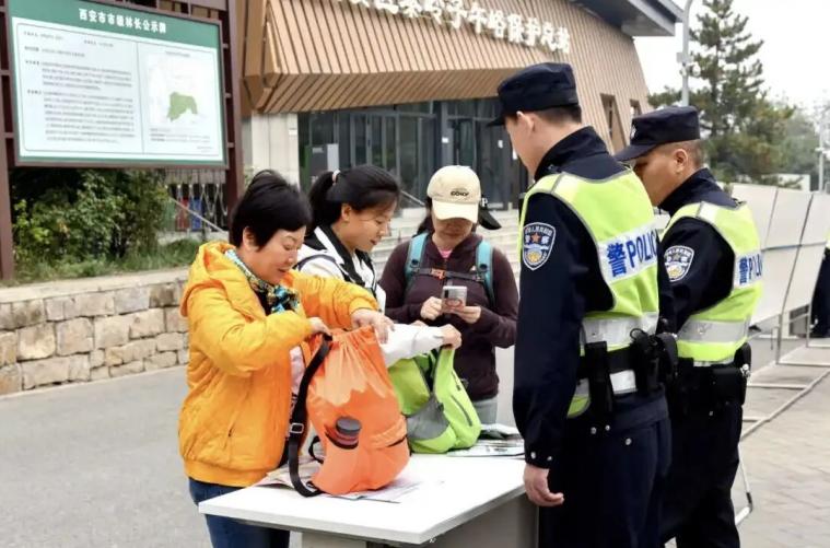 十月下旬的秦岭北麓,层林尽染,万山红遍。秦岭子午峪保护总站闸门处,公安长安分局民警与工作人员正逐一对进山游客开展开包检查,广播里循环播放的森林防火提示,时刻警醒着过往群众。保护站法治小广场上,橱窗、标语、海报错落排布,将生态保护法治理念融入山林景致。