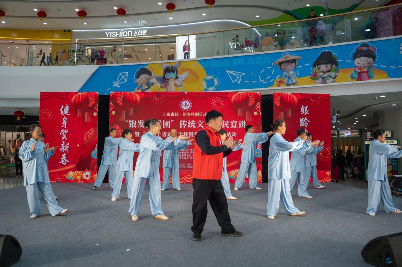 冬日里的秦东大地暖意融融,银发力量汇聚,焕发出别样荣光。2026年1月18日,渭南高新区万达广场内欢声笑语、暖意涌动,"三秦银龄·新春特别行动·银发宣讲团传统文化惠民宣讲暨'我要上省运'全民健身大拜年"主题活动圆满落幕。这场以"银龄传文脉 健身贺新春"为核心的盛会,既是陕西省"三秦银龄行动"省级示范项目的基层生动实践,更是渭南迎接2026年省运会、争创全国全民运动健身模范市的精彩预热,为即将来临的新春佳节注入文化与健康交织的双重暖意,让"体育+文化+慈善"的融合之花在秦东大地绚丽绽放。