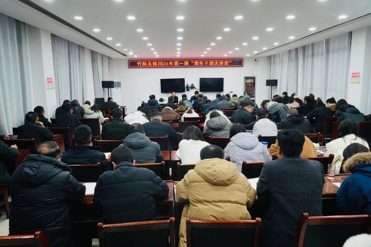 1月26日上午,竹林关镇2026年第一期“青年干部大讲堂”开讲。镇机关全体干部、18个村(社区)党组织书记共计100余人参加会议。