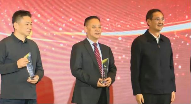 谢晓林董事长(左二)荣获“关爱家乡·回馈桑梓优秀企业家突出贡献奖”