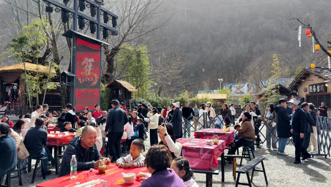 四,当代新生,从农家院到文旅的创新。这次柞水县终南山寨磨盘席的举办融合了春节文旅。在此举办,得益于终南山寨的场景,惠达房产企业的大力支持,牛背梁酒的助兴,柞水农家乐管委会精心策化与指导,平价亲民,热闹有序,搭配非遗展演,篝火互动,财神巡游,紅包发放,让古老的年俗在终南山寨走进更多人的视野,既守住了乡土根脉,又成为东西南北游客来柞水过年的特色体验。让陕南的年味可感!可品!可传承!