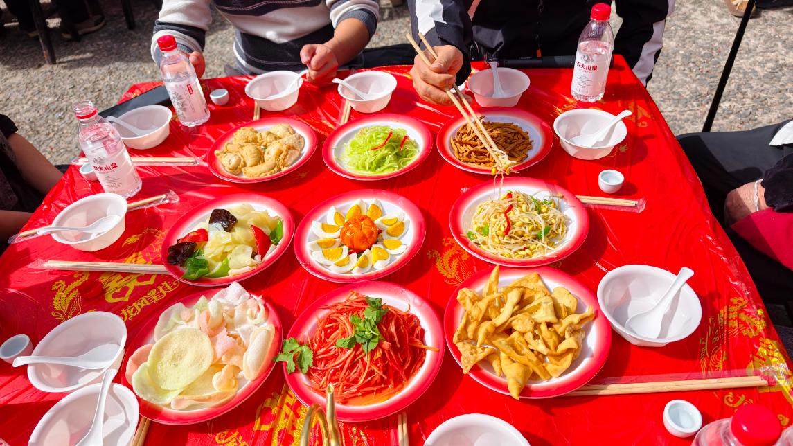三,文化寓意,以磨盘为媒,聚的是人心。磨盘席不止于是饮食,更是乡村社交与人情世故的传承,以圆为体,向征着圆满,轮流做东,体现了守望相助的邻里团结和睦。也体现了,祈福纳祥,磨来新年安康,碾走旧岁灾害,也是饮食文化的传承,老者掌勺,晚辈端菜,把手艺与礼仪代代相继。