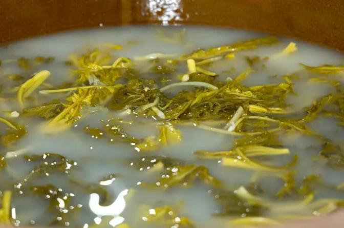 梧溪畔的浆水菜,有整有碎,各有千秋。整菜完整地保留了蔬菜的形态,叶片舒展,脉络清晰,咬下去,脆嫩的口感在齿间迸发,酸香直抵鼻腔;碎菜则更显贴心,切得细碎的菜梗菜叶,无需过多处理,下锅即熟,无论是做浆水面的浇头,还是炒一盘浆水菜炒肉,都能迅速释放出浓郁的风味。