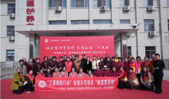 3月5日,在第63个“学雷锋纪念日”当天,由陕西省民政厅、陕西省老龄工作委员会办公室指导,陕西省慈善联合会主办的“三秦银龄行动”省级示范项目“银发宣讲团”,走进大荔县东城街道北大社区陕健医渭北医护养老院,开展“银发宣讲学雷锋 志愿奋进‘十五五’”主题志愿服务活动。