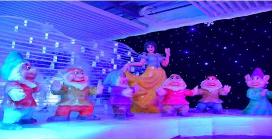 我们吃饱喝足后便来体验好多好多的游乐项目,有儿童的:木牛流马、漂移碰碰车、蹦蹦床、山地秋千等等想玩啥都有。我们体验了冰雪世界,冰雪世界展览馆馆内温度常年保持在零下10℃—30℃,馆内冰景以彩色冰、透明冰和人工雪为材料;使得在冬季才有的冰雪景观,可以在春、夏、秋三季的室内实现;馆内有耳熟能详的卡通形象林立其中,灰姑娘的冰马车,会唱歌的美人鱼,寻找白雪公主的小矮人,还有小朋友们较喜爱的圣诞老人和他那装满圣诞礼物的麋鹿车。