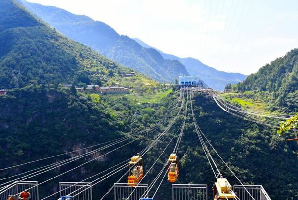 走过玻璃桥有两条路经上山,一条是有18个盘山栈道,就是古时候人们所称的“18盘”。一条是走地心电梯,电梯有近百米高,相当于30层楼那么高,搭载电梯瞬间就到了山上的古道岭。