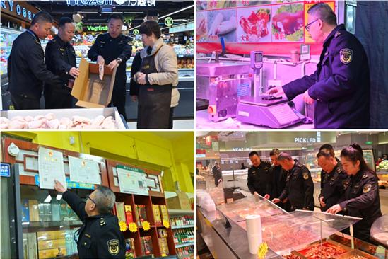 在鲜丰优选超市、好想来零食、兴良友超市、百姓购物广场等地,执法人员重点核查预包装食品、休闲食品、生鲜产品的生产日期、保质期、标签标识及进货来源,严厉打击销售过期变质、“三无”、标签不规范食品等违法行为,督促经营主体切实履行食品安全主体责任。同时,针对蔬菜、肉禽蛋奶、水产等生活必需品,重点检查商品质量,核验电子计价秤检定合格证明,规范明码标价行为,严肃整治缺斤短两、价格不透明等侵害消费者权益问题,并现场向商户宣讲诚信经营相关要求。