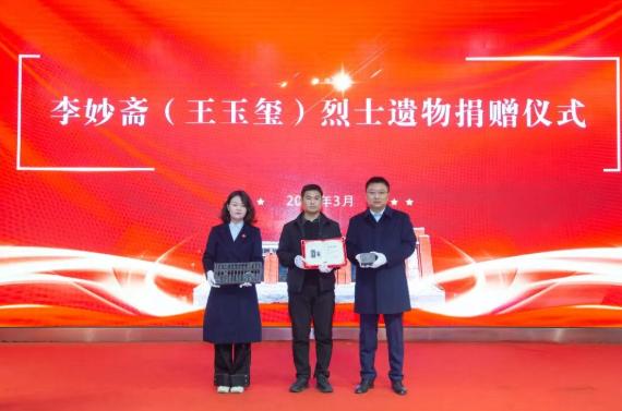 3月31日,李妙斋(王玉玺)烈士遗物捐赠仪式在照金纪念馆举行。烈士曾孙王前受家人委托参加仪式,照金纪念馆全体干部参加。