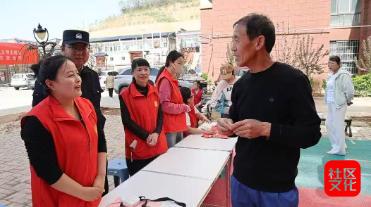 社区志愿者在活动现场为居民发放奖品