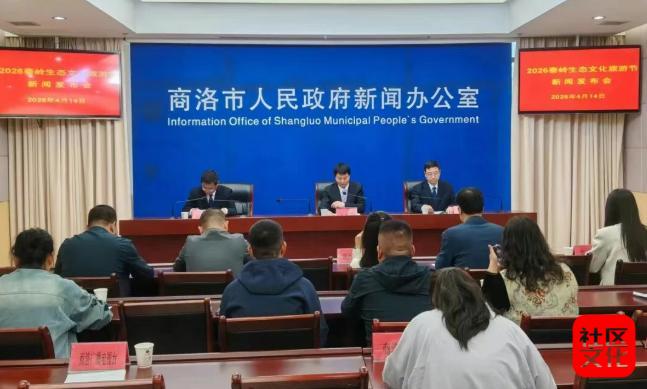 4月14日,2026秦岭生态文化旅游节新闻发布会在商洛市召开。市文旅局副局长王秋峰、镇安县人民政府副县长周忠海发布有关情况,省级驻商媒体及市级主流媒体代表参加发布会。