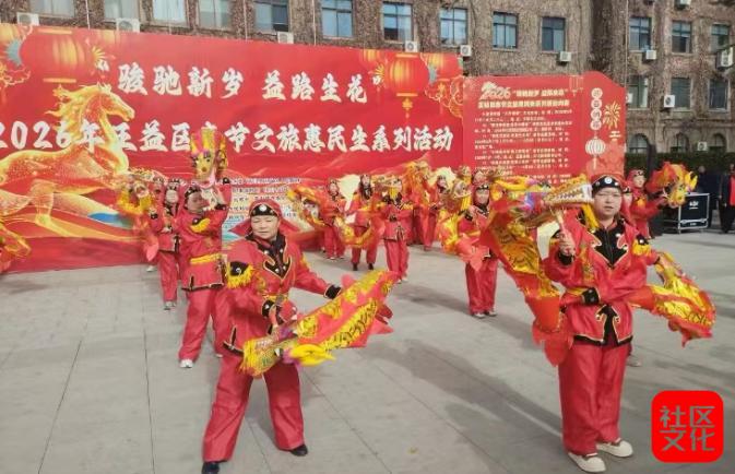 同时,依托元旦、春节、元宵节等传统节日,王益区精心打造各类民俗文化活动。先后举办“瑞马迎春至 秧歌贺岁来”传统民俗展演、“指尖生花 纸韵童心”少儿剪纸、“福满新春 手作纳吉”香囊DIY等亲子活动,以及“灯影摇春色 谜题乐万家”元宵喜乐会;圆满举办省级非遗“义兴燎疳”民俗活动,融合传统仪式、文艺展演、非遗集市、全媒体传播矩阵,让古老民俗焕发时代活力;2026年元宵节社火巡街展演活动精彩纷呈,舞龙舞狮、马术变脸等节目兼顾传统与现代元素,线上线下累计观看人数超30万,为群众献上了丰盛的民俗文化盛宴。