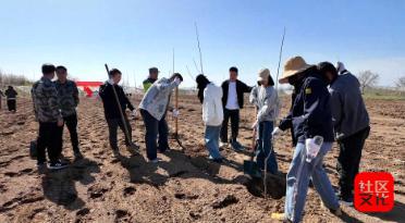 干部群众协作植树,挥锹培土干劲足