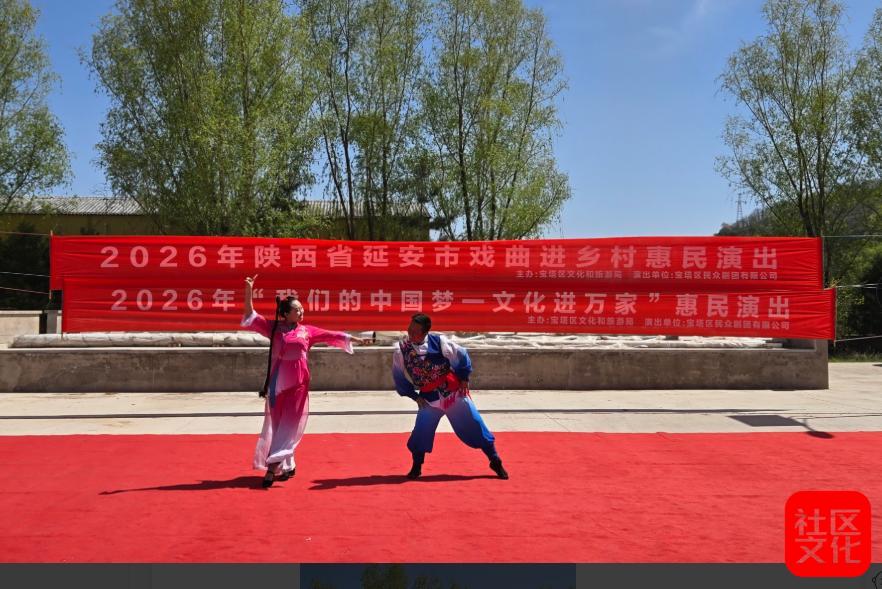 2026年4月20日,延安市宝塔区麻洞川社区迎来了一场别开生面的文化盛宴——“我们的中国梦,文化进万家”惠民演出。此次活动由宝塔区民众剧团倾情奉献,为当地村民带来了一场精彩纷呈的戏曲演出,让传统文化在乡村的舞台上焕发出新的生机。