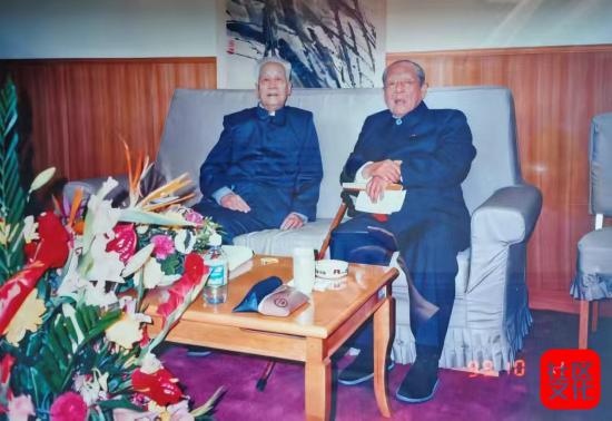 镜头之下,两位从陕西渭北地区走出的老一辈革命家并肩而坐,神情从容而亲切。彼时正值世纪之交,也是中华人民共和国成立50周年喜庆之日的第二天,这张合影既是战友情谊的见证,也承载着厚重的历史记忆。